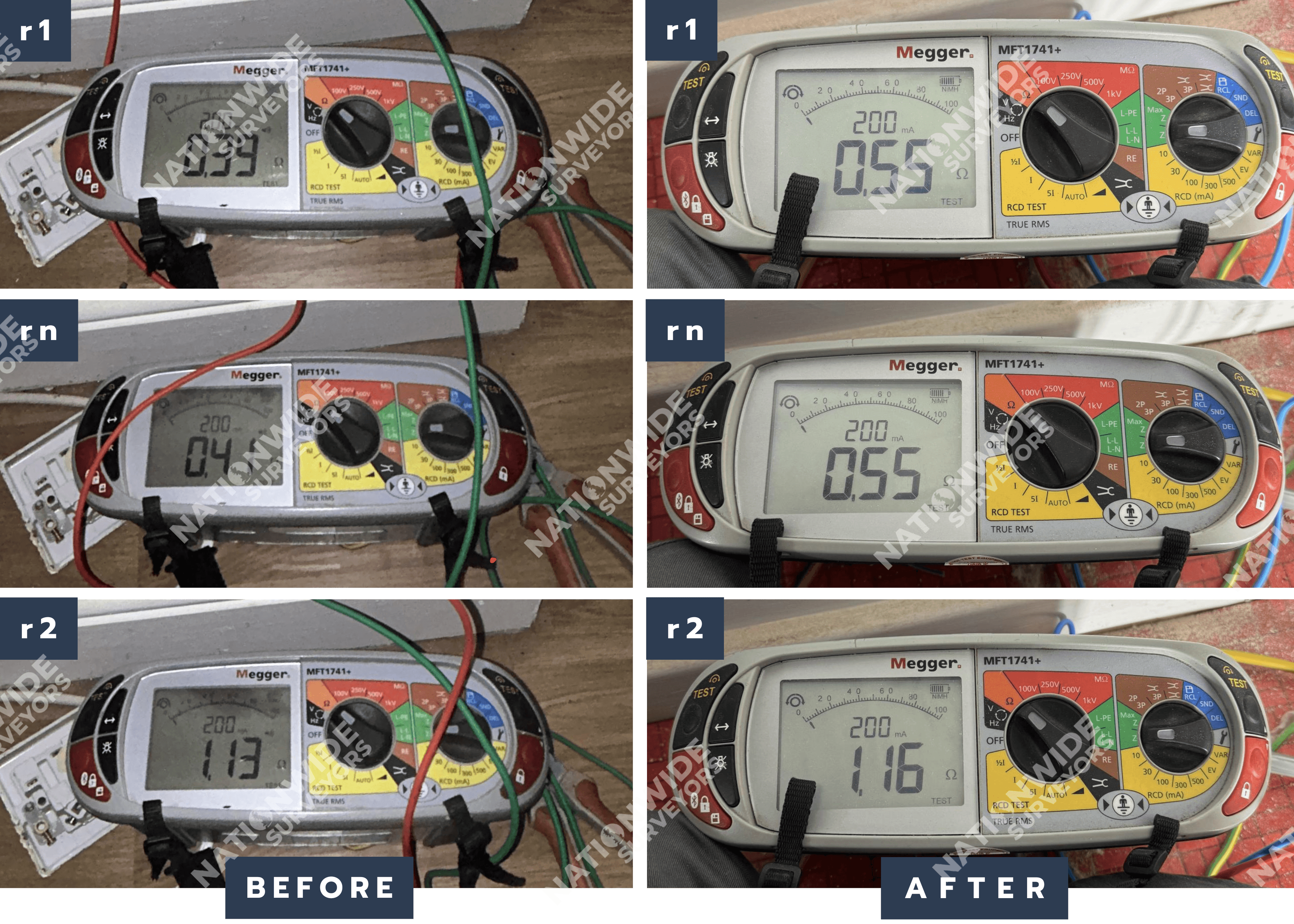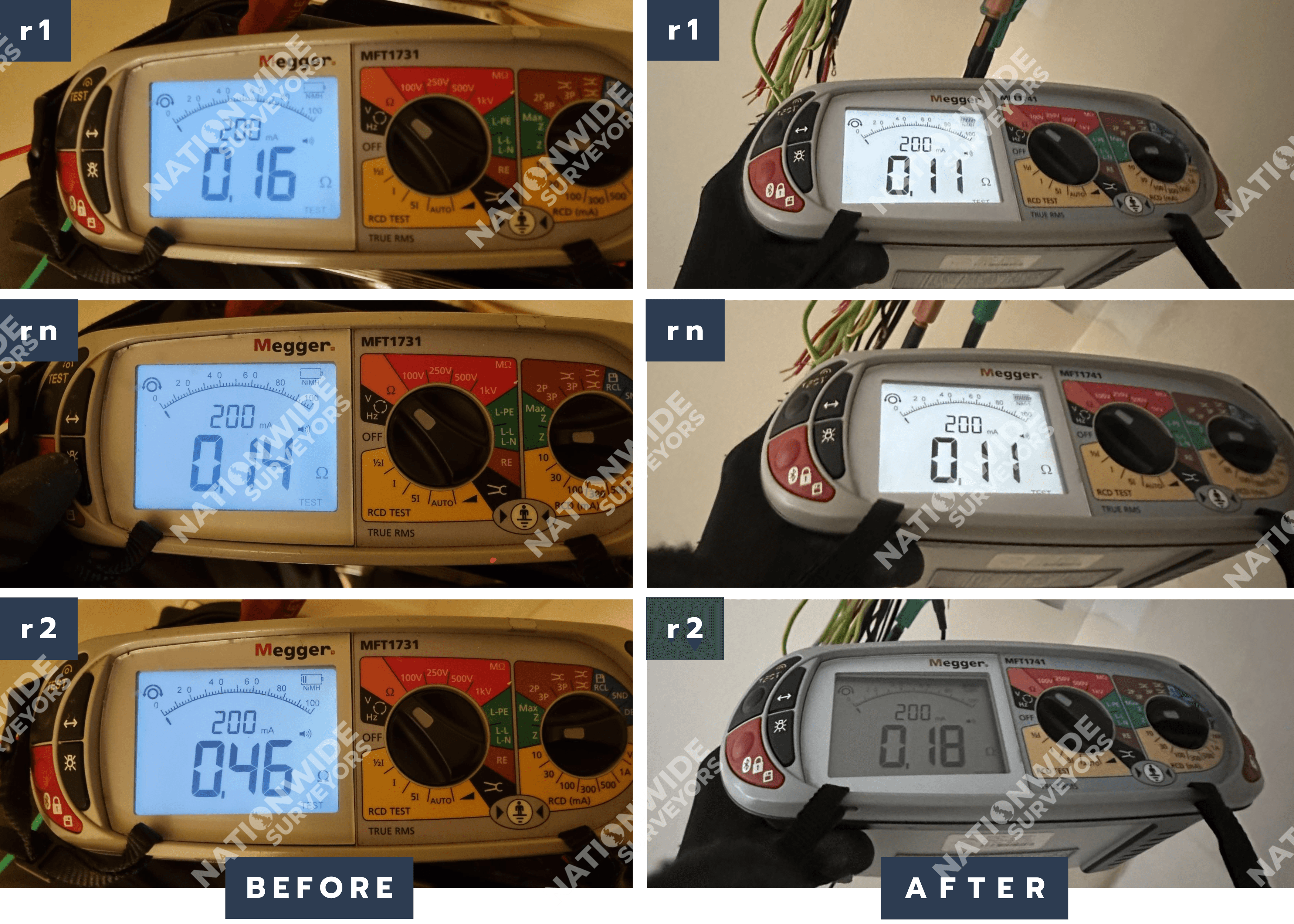 We investigated and resolved a high Zs (earth loop impedance) fault affecting the socket outlets in the property. A high Zs reading can indicate poor earthing or loose connections, which can pose a serious safety risk by preventing protective devices from operating correctly during a fault. We carried out detailed testing to identify the source of the issue, which involved checking the wiring, terminations, and earthing path. Once located, we rectified the fault by securing all connections and ensuring the earth continuity met the required standards. Final testing confirmed that all socket circuits now have safe and compliant Zs values in line with BS 7671 regulations.