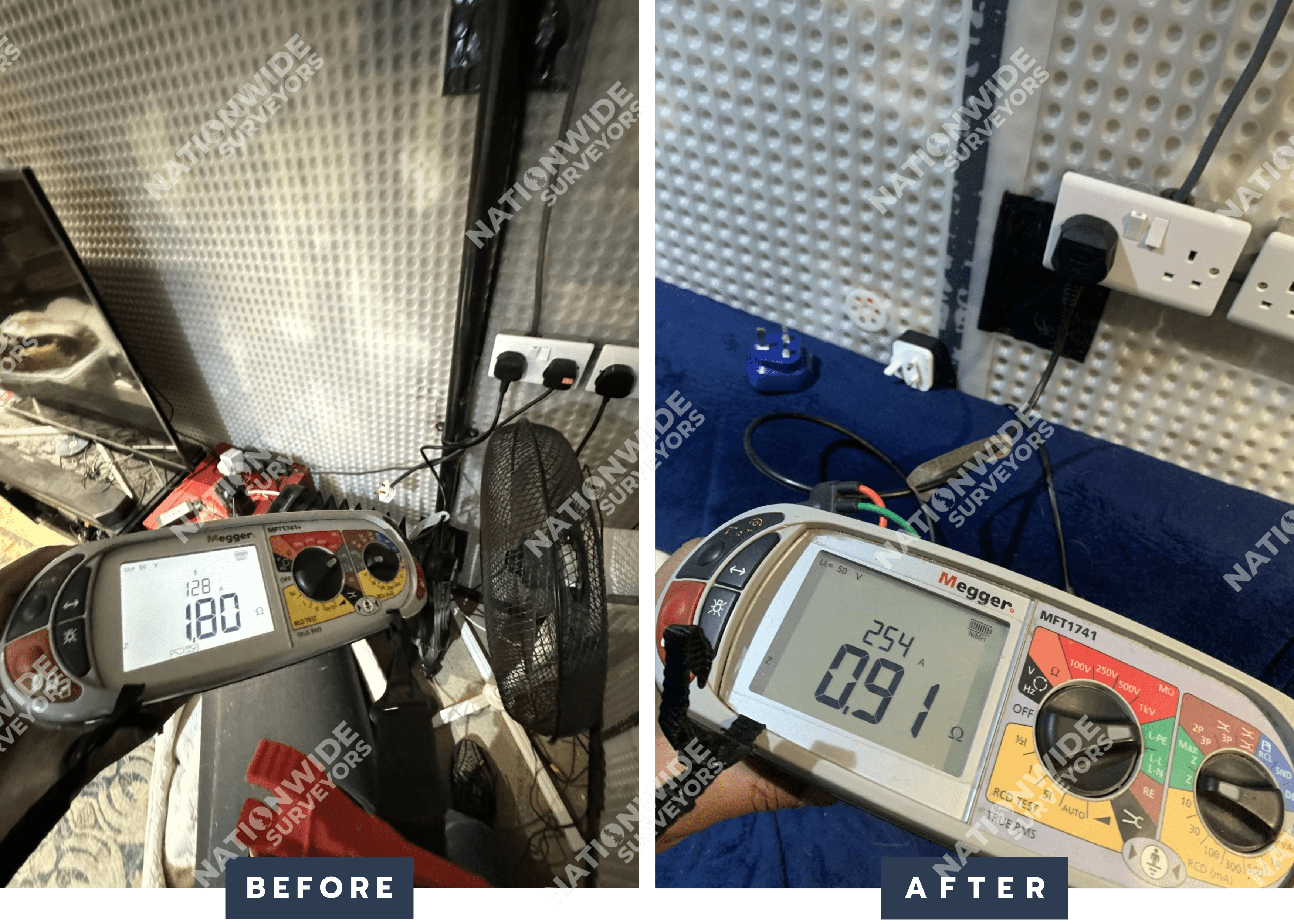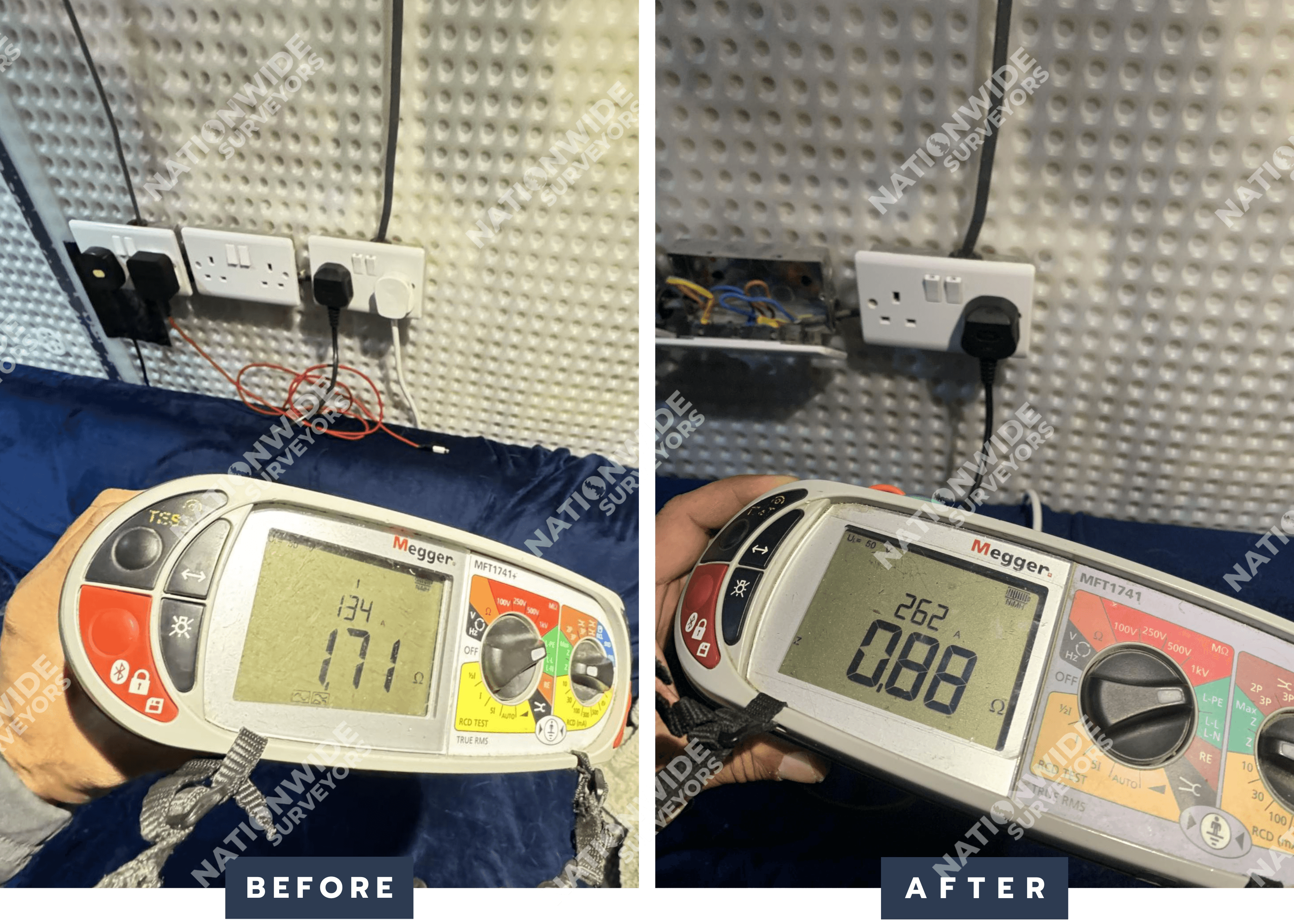 We investigated and fixed an earth fault affecting the sockets in the property. We started by testing all socket outlets to identify the fault location. Using specialist equipment, we traced the issue to a damaged earth connection within the socket circuit. Once repaired, we retested the entire circuit to confirm full electrical safety and compliance with UK wiring regulations.